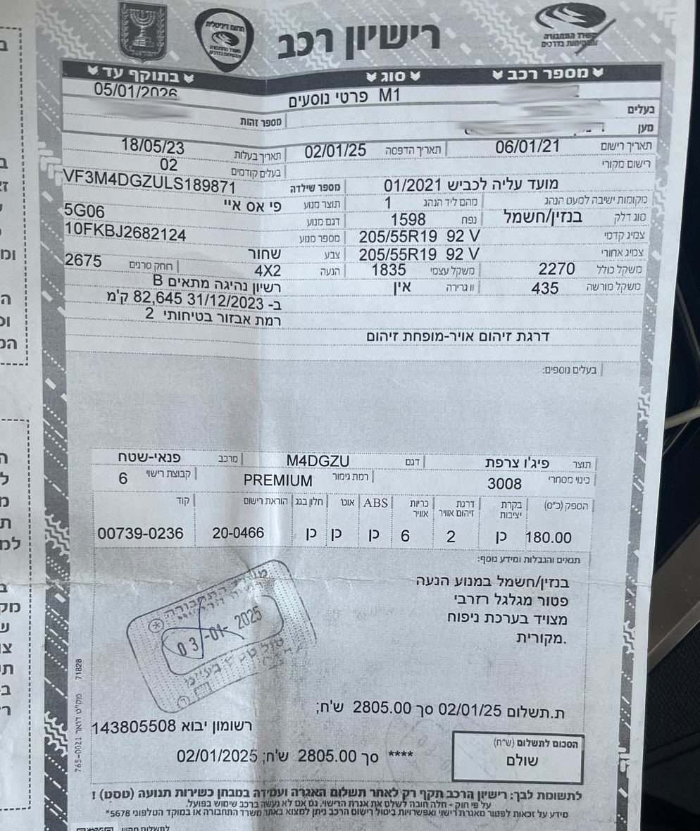 פיג'ו 3008 PREMIUM, 2021 המכירה תתחיל ב: 09/11/2025 בשעה 12:00