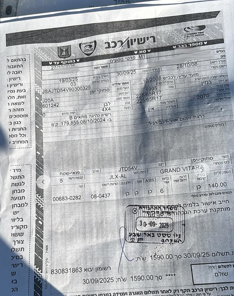 סוזוקי גראנד ויטרה JLX-AL, 2008 המכירה תתחיל ב: 24/12/2025 בשעה 12:00
