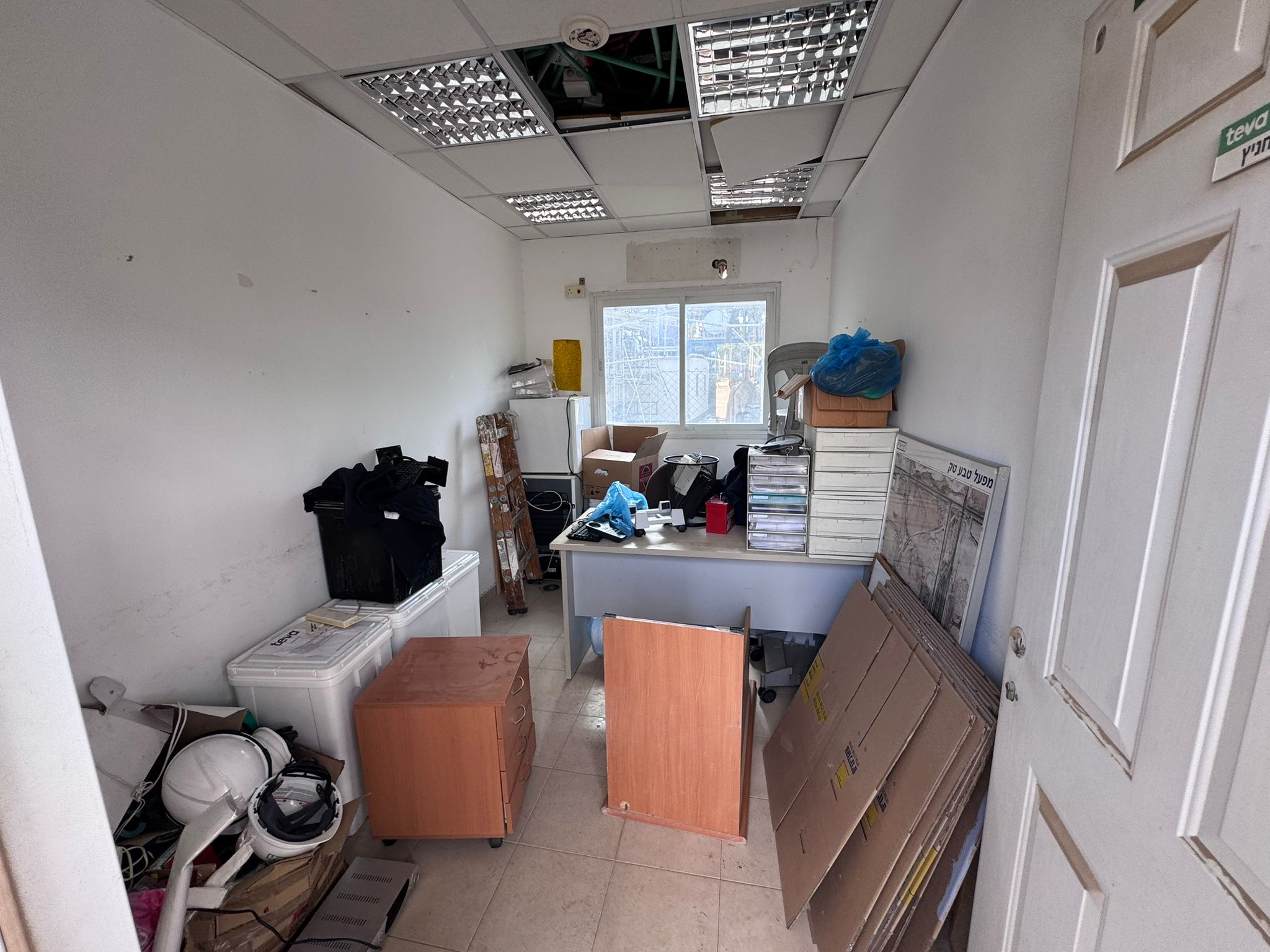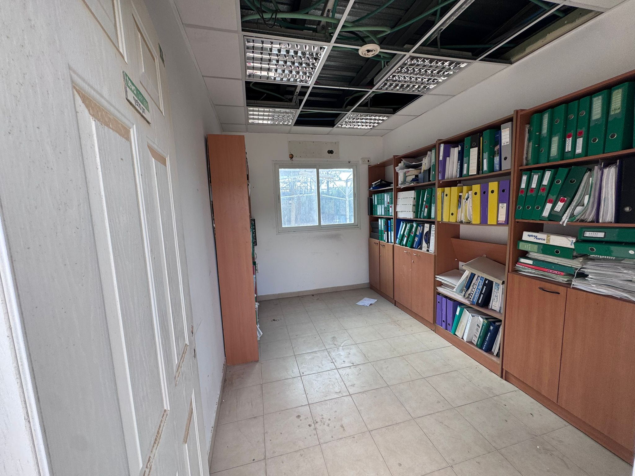 - פנים המבנים מחופה קירות גבס, עם תקרה אקוסטית.
